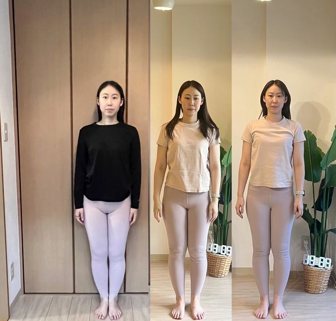 肩の左右差が整い体の重心バランスが改善。全身のシルエットがすっきり変化。